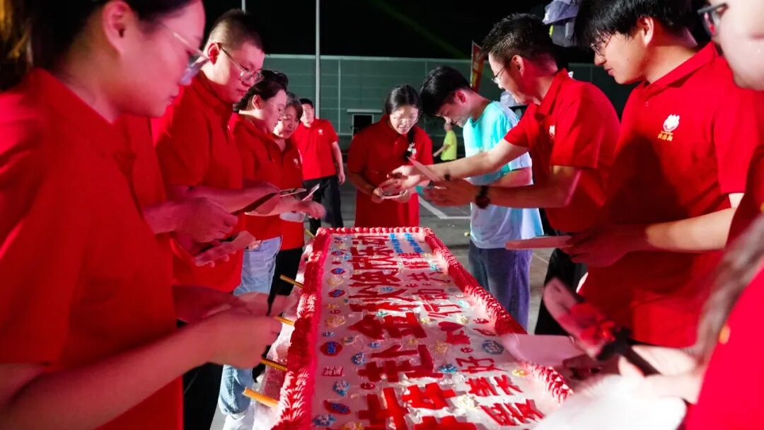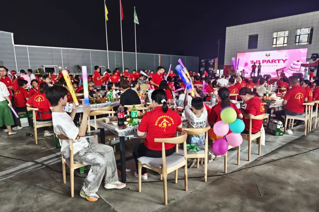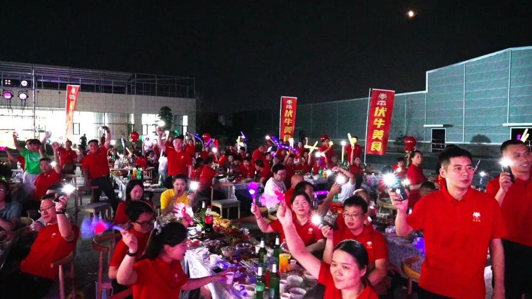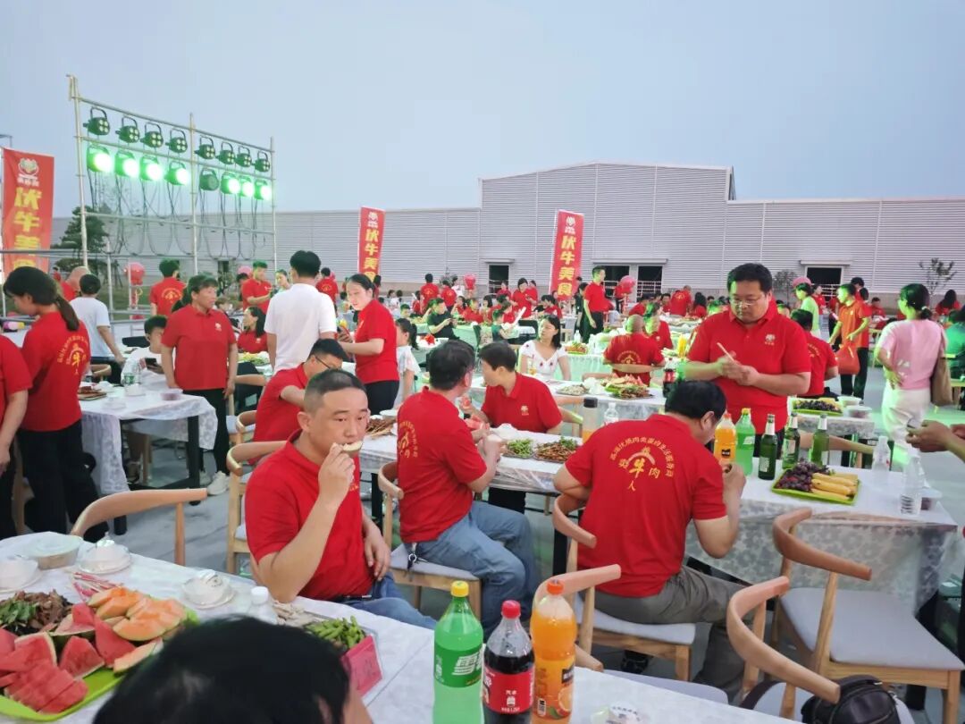 接着精彩纷呈的节目表演拉开帷幕,音乐爱好者带来的歌曲串烧,涵盖流行、摇滚等多种风格,用动人旋律点燃全场热情;以工作生活为蓝本创作的团队演讲,幽默诙谐,引发台下阵阵欢笑与共鸣;活力四射的舞蹈表演,展现出员工们的青春风采,赢得台下掌声不断。 之后公司为本月过生日的员工举行了庆祝仪式,并送上生日礼物和暖心的祝福! 夜幕降临,广场上烧烤香气四溢,啤酒、各类牛肉产品、水果等摆满餐桌。员工们一边品尝美食,一边欣赏表演,欢声笑语回荡在整个园区。大家围坐在一起,交流着工作与生活,平日里的疲惫与压力在这一刻烟消云散,团队的凝聚力在无形中增强。 最后,全体员工合唱《团结就是力量》,歌声激扬,饱含着对公司的热爱与对未来的憧憬。