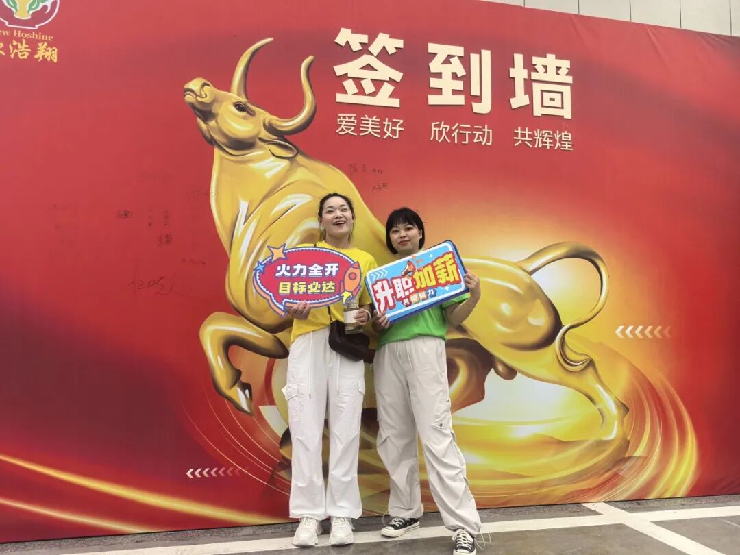 下午5点,员工们陆续入场,在精心布置的打卡区拍照留念 幸福门、天圆地方、五牛图等欣浩翔特色打卡点,吸引大家纷纷驻足,用相机定格下这欢乐瞬间,照片里满是大家对公司发展的美好期许。